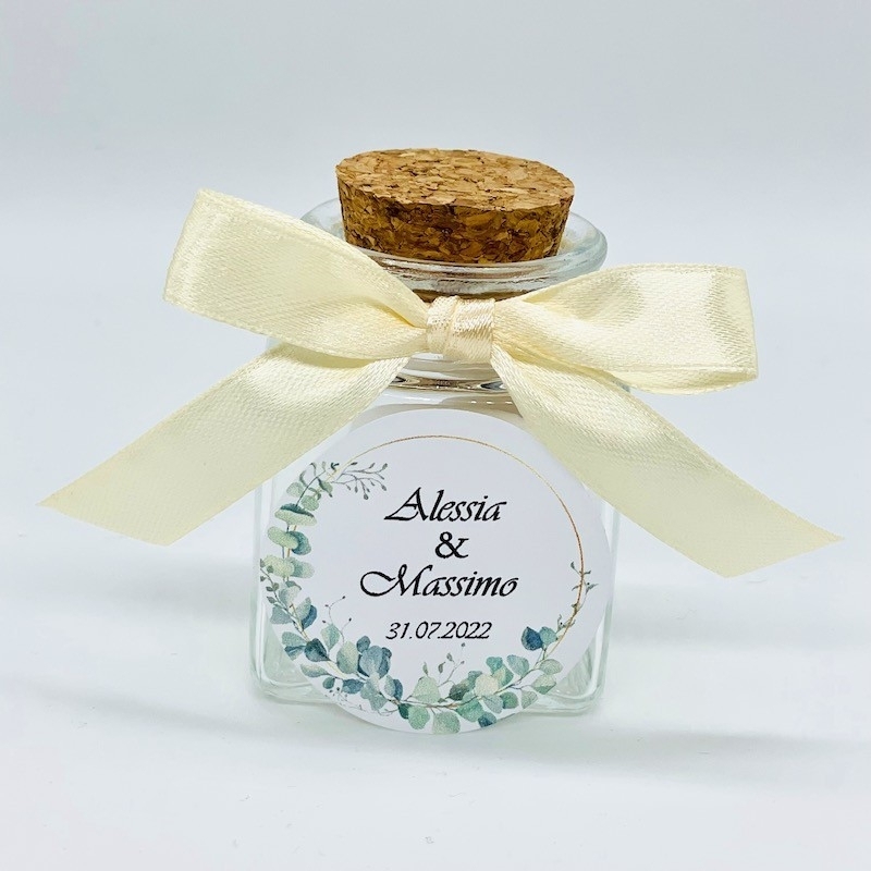 Les pot à dragées sont livrées avec 5 dragées, ruban et pendentif personnalisé.