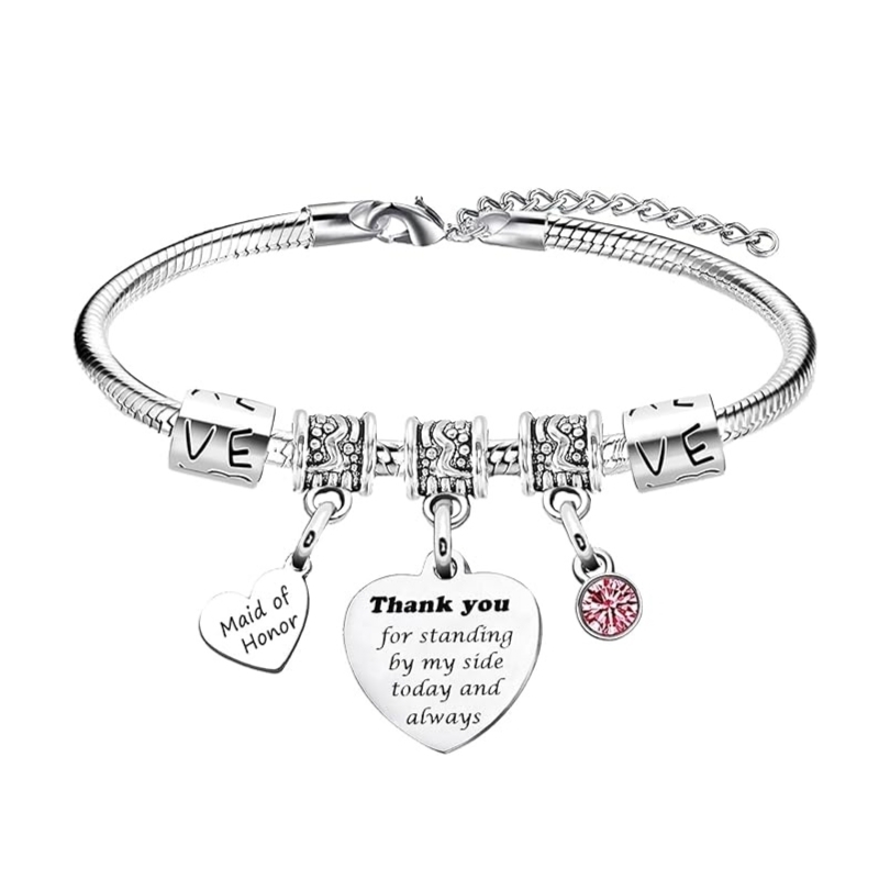 Le bracelet est en acier inoxydable et gravé du texte « Thank you for standing by my side today and always »