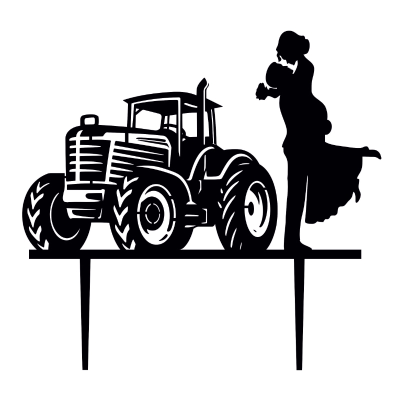 Cake Topper 'Couple de mariés sur tracteur'