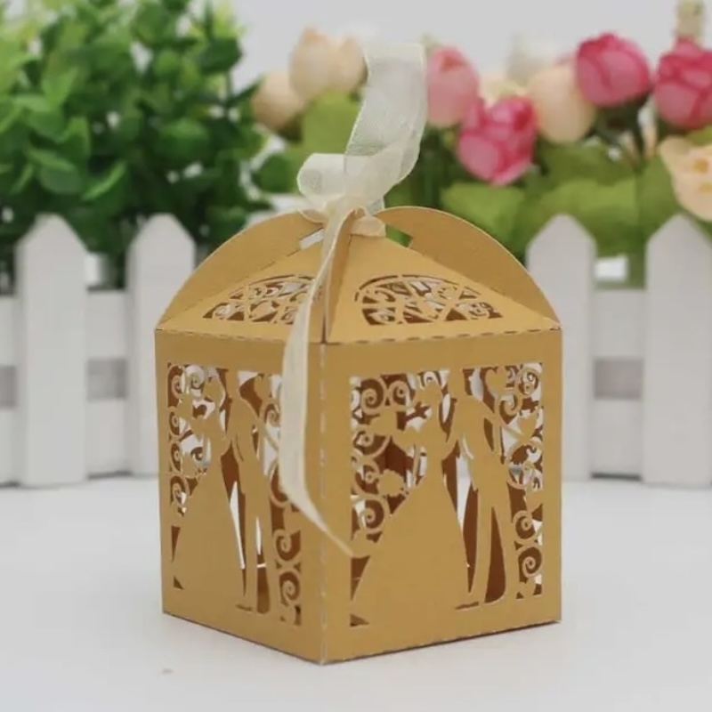 10 Boîtes à dragées 'Couple marié' - Or