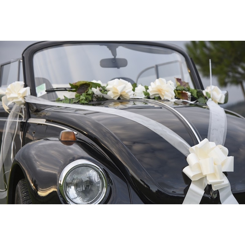 Pour la voiture des mariés, voici un très joli kit de décoration pour voiture mariage dans lequel vous trouverez :