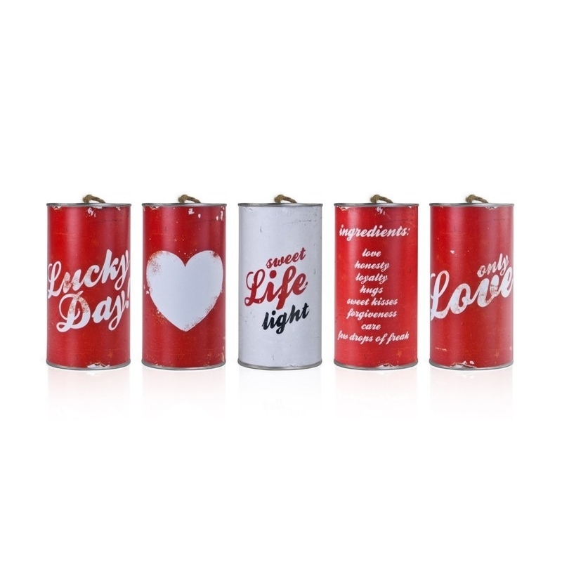 Kit pour le départ des mariés composé de boites métaliques de 14 cm de haut avec rubans satin pour les accrocher. C'est le grand retour de cette mode vintage pour souhaiter le plus grand bonheur aux mariés.