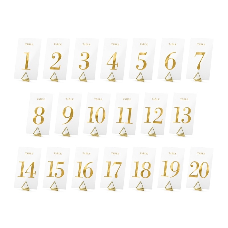 Imprimés avec des chiffres or, les marque table sont des accessoires deco originaux pour votre mariage.
