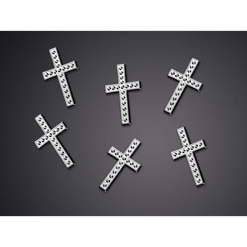 Sujet en forme de croix de couleur argent. A coller sur tous vos faire-part, menus, porte-noms, pour agrémenter un contenant à dragées ou à disposer sur la table en décoration.