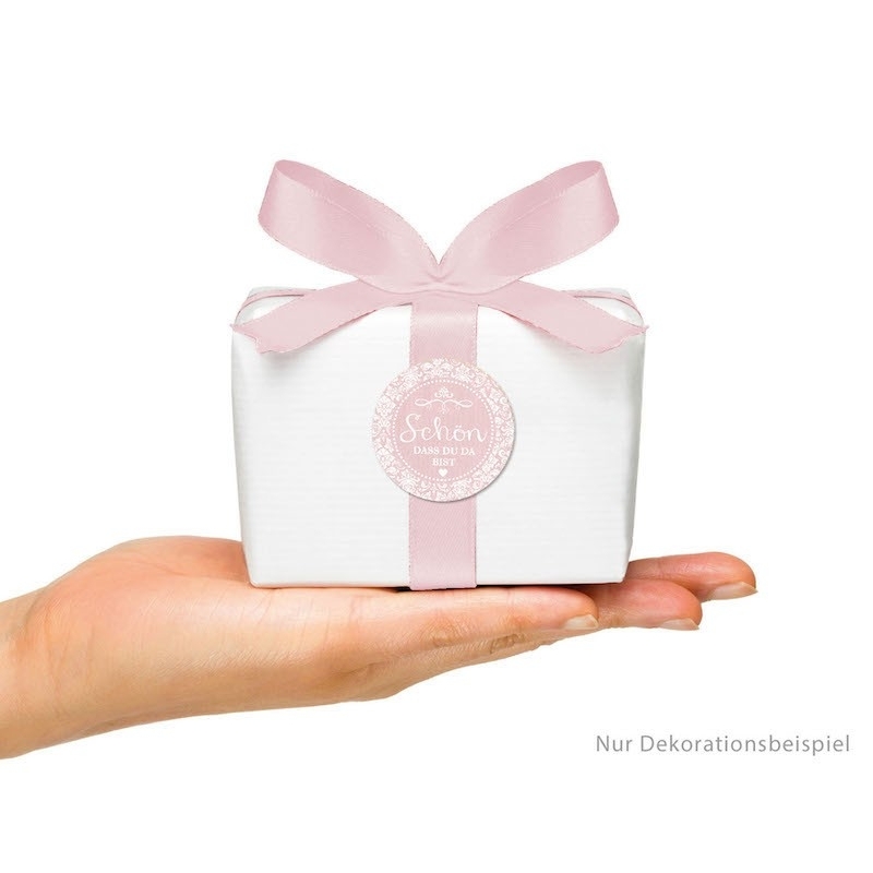 Ces superbes autocollants avec "Schön dass du da bist" imprimé surprennent les invités avec un beau message.