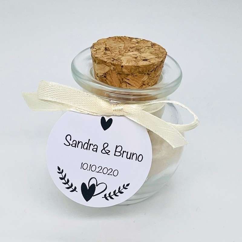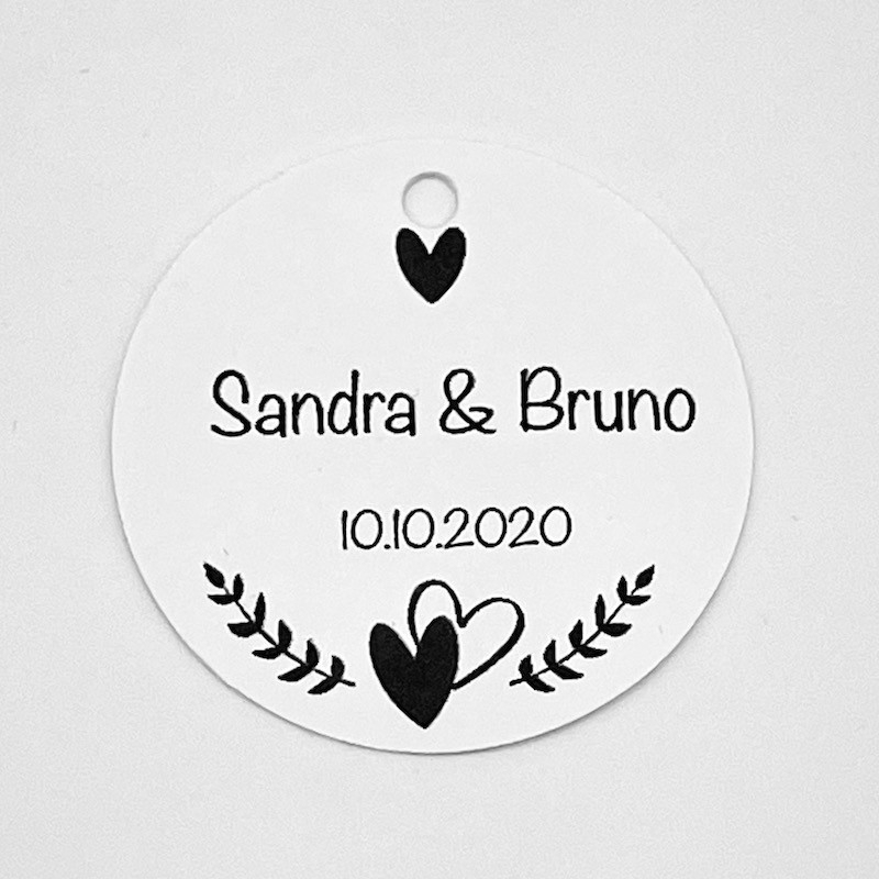 Pendentifs personnalisés pour cadeaux ou bulles de savon. Impression du nom des mariés et de la date du mariage.