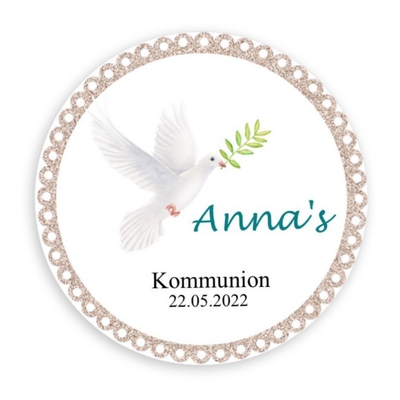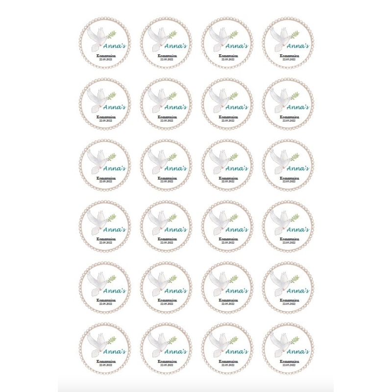Avec les 24 autocollants ronds et personnalisés "Colombe", donne un magnifique aspect aux cadeaux de communion et surprends tes invités !