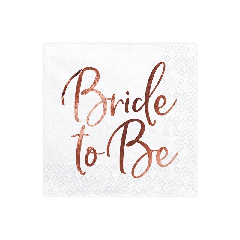 Ces magnifiques serviettes en papier blanc sont marquées du texte 'Bride to Be' en dorure Rose Gold. Ce lot de serviettes pourrait être un élément de décoration sur les tables de vos convives. Elles pourrons aussi bien trouver leurs places pour une soirée d'enterrement de vie de jeune ville mais aussi de mariage.