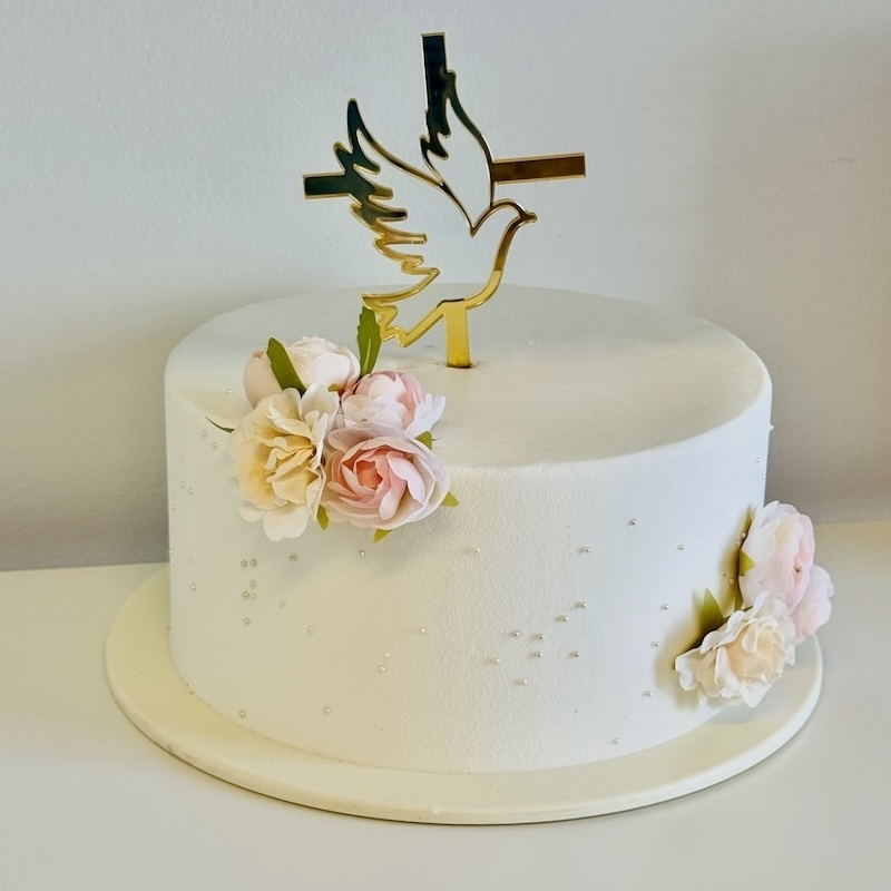Son look simple et raffiné s'harmonise idéalement avec des décorations classiques, modernes et élégantes. Que ce soit pour un baptême, une communion ou une célébration religieuse, ce cake topper apporte une touche stylée et significative au gâteau. Grâce à son acrylique robuste, ce cake topper est durable et peut également être conservé comme souvenir.