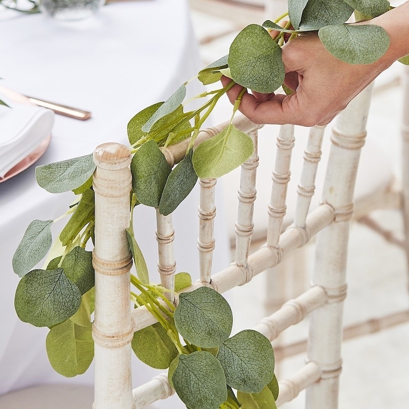 Cette guirlande de feuilles d'eucalyptus ravira la décoration végétale d'un mariage champêtre ou botanique.