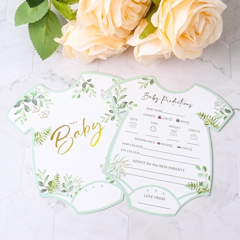 Chaque invité remplit la fiche de prédiction où il devine le poids, l'apparence et le caractère du bébé. Les cartes sont ensuite jetées dans la boîte. Une fois que le bébé est né, les parents peuvent voir qui avait raison !