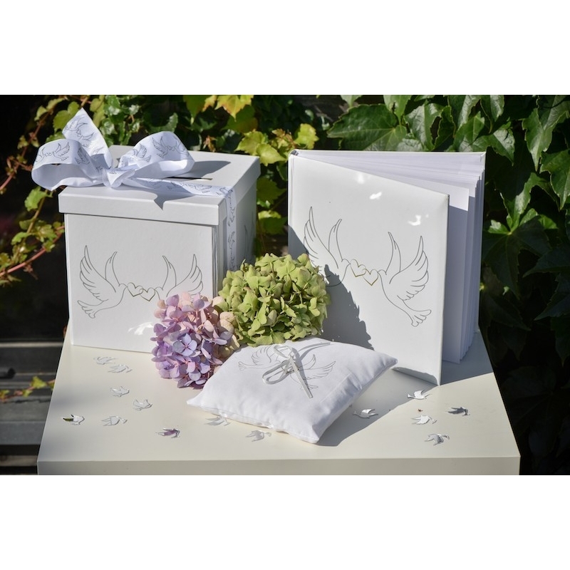 Vous aimerez ce livre d'or de mariage colombes partageant deux coeurs à l'unisson pour sceller votre amour.