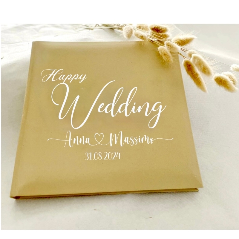 Ce livre d'or avec l'inscription "Happy Wedding" est idéal pour conserver vos vœux les plus chers et de superbes souvenirs pour l'éternité. Notre livre d'or est fabriqué à la main avec amour pour vous et personnalisé avec vos données personnelles.