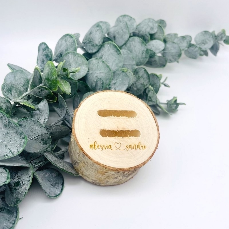 Ce magnifique Porte d'alliances rustique avec vos noms vous permet d'avoir vos alliances parfaitement présentées à l'autel. Ce porte d'alliances en bois a deux rainures pour y placer les alliances. Le centre du coussin est décoré d'un petit ruban de jute.