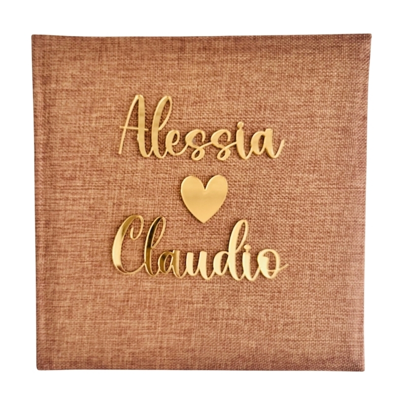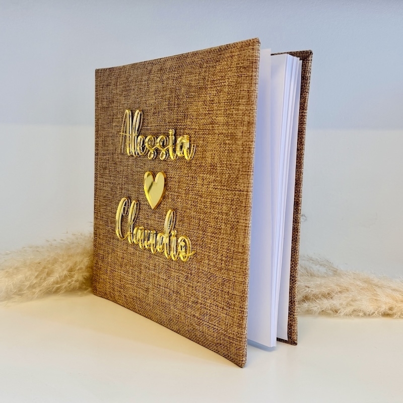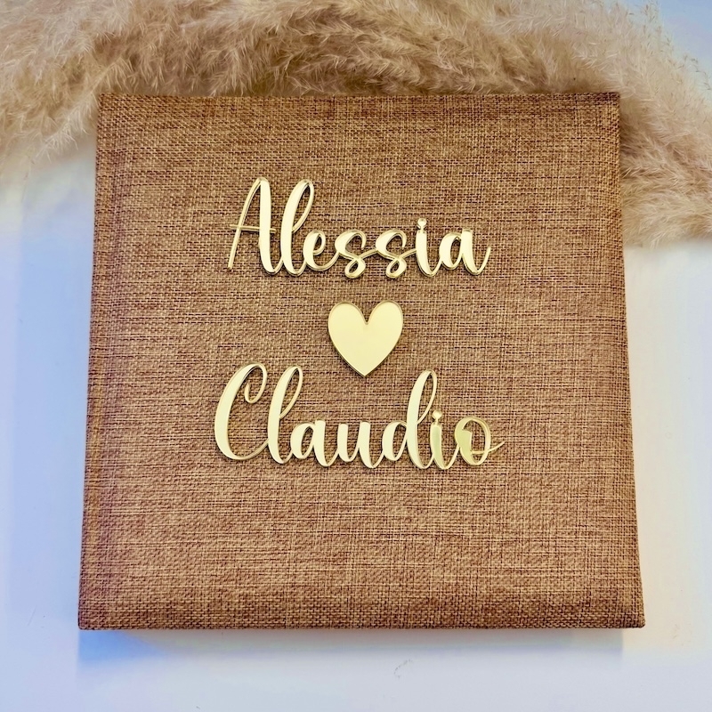 L'acrylique brillant confère à la couverture un look moderne et élégant, à la fois personnalisé, raffiné et unique. Chaque livre d'or est conçu individuellement : les noms et le symbole décoratif en forme de cœur sont découpés au laser dans du verre acrylique robuste et soigneusement apposés sur la couverture. Cela crée un effet tridimensionnel et élégant.