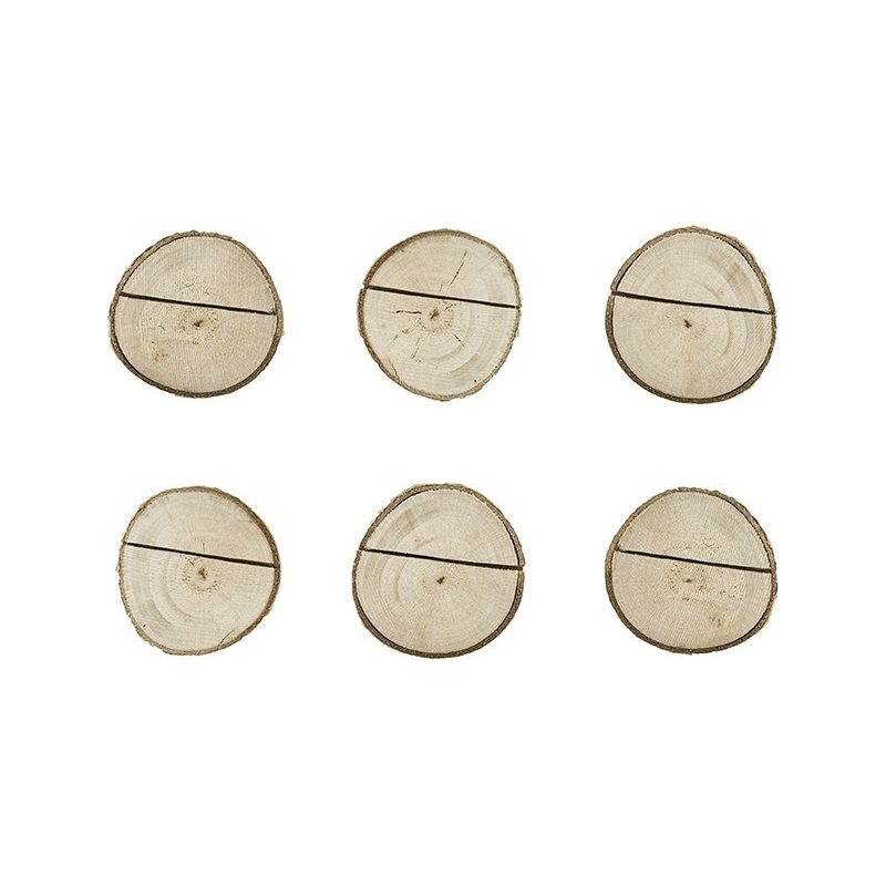 Ce rondin de bois apportera une touche naturelle à votre décoration. Il est en bois et crée un mini tronc. Le porte nom présente une incision pour y glisser la carte.