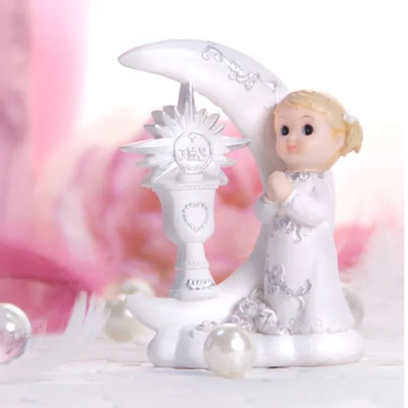 Vous souhaitez créer un gâteau pour la première communion d'une petite fille ? Dans ce cas, la figurine de gâteau est idéale pour transformer en un tour de main la création en un accroche-regard particulier. Vous recevrez une figurine de gâteau de 9 cm. La figurine de gâteau représente une jeune fille en prière devant une lune et un calice.