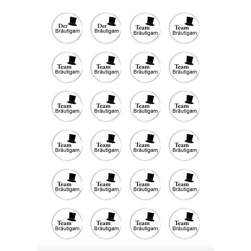 - Contenu : 24 autocollants (2 x Der Bräutigam & 22 x Team Bräutigam)