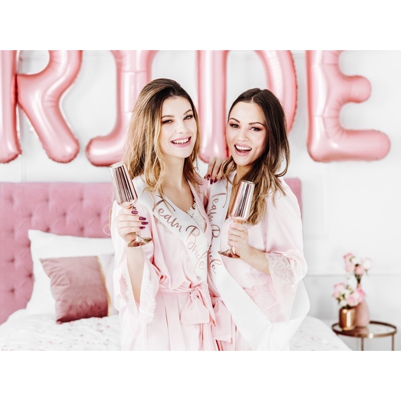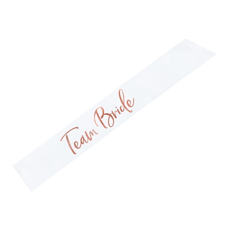 Écharpe avec l'inscription "Team Bride" en lettres en rosé-or. Cette écharpe s'attache grâce à un ruban.