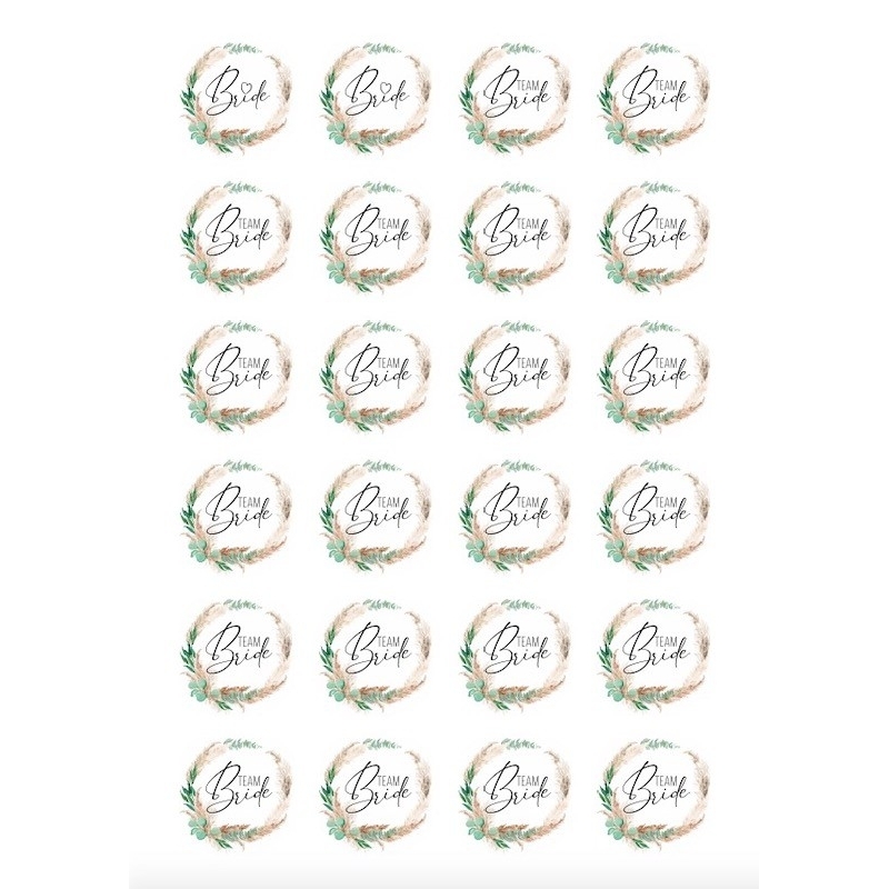 - Contenu : 24 autocollants (2 x Bride & 22 x Team Bride)