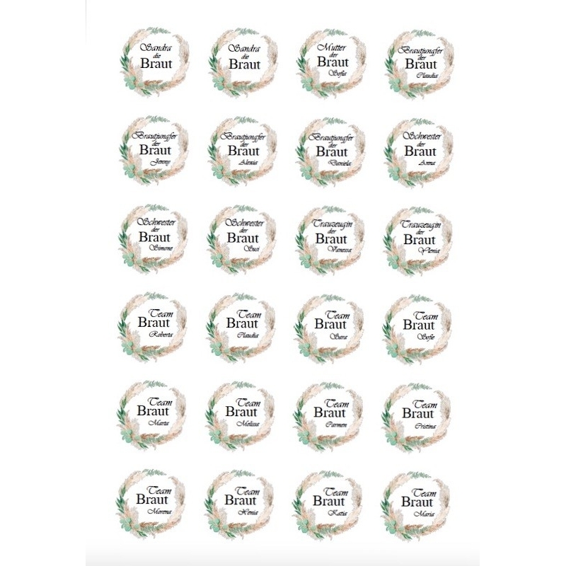 Personnalise les autocollants pour la mariée, la sœur, la mère, le témoin, la demoiselle d'honneur et le reste de l'équipe.