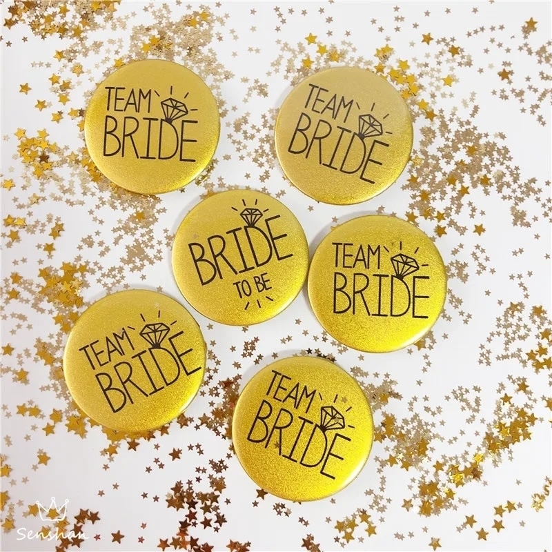 Lot de 6 badges pour enterrement de vie de jeune fille: 1 x Bride, 5 x Team Bride.