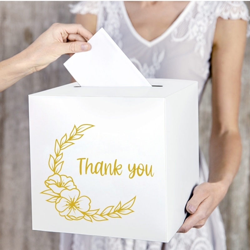 Qu'il s'agisse d'une boîte à cartes, d'une boîte à lettres, d'une boîte à monnaie, d'une boîte à souhaits ou d'une boîte à dons, ce produit polyvalent crée un emplacement central pour les messages personnels et contribue à créer une atmosphère harmonieuse et élégante.