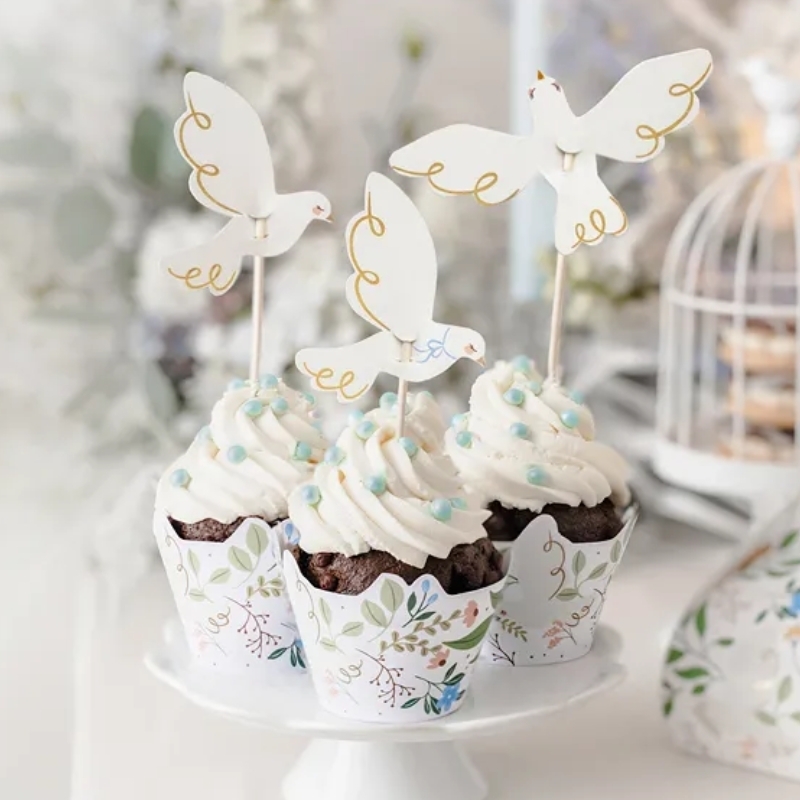 Cupcake toppers 'Colombe' (6 pièces)