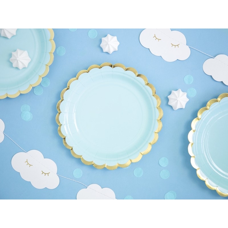 Découvrez ces magnifiques assiettes en carton bleues avec ces bords dorés. D’un diamètre de 18 cm, elles sont destinés au dessert ou au gâteau. Vendues par pack de 6 assiettes, elles s’accorderont parfaitement à votre décoration de table.