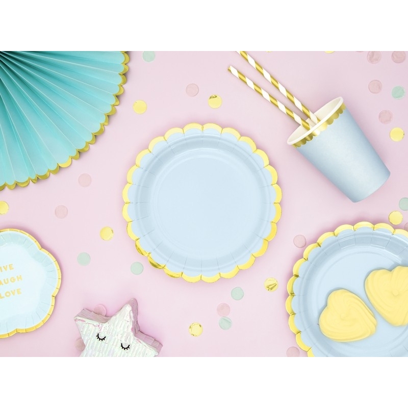 Pour tous les amoureux de la couleur bleu, ces gobelets vont vous ravir ! Avec leur joli bord doré, ils apporteront de la douceur à votre ambiance de fête. Ils iront parfaitement avec les thèmes Baby Shower ou baptême.